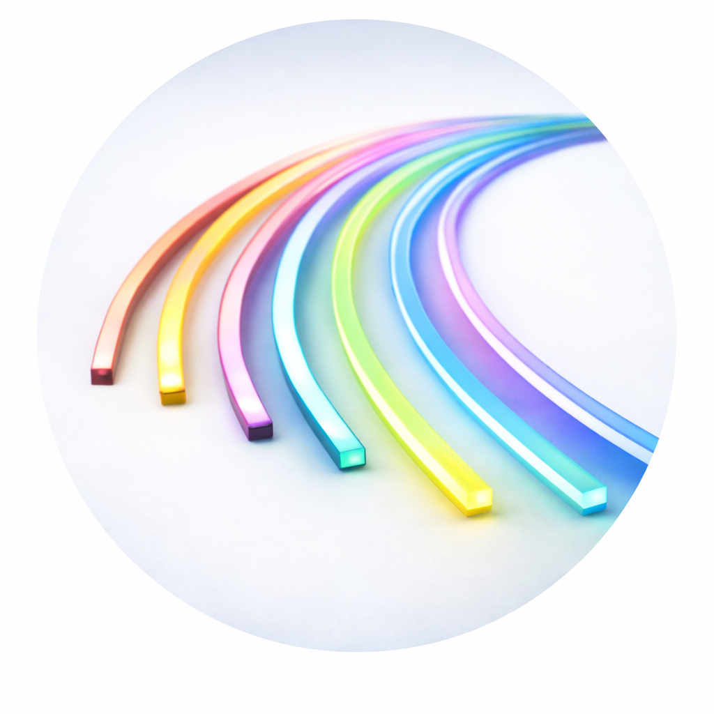 Der digitale LED Streifen 5050-60-UCS2904B ist ein hochwertiger adressierbarer RGBW-LED-Strip für professionelle und kreative Lichtinstallationen im Innenbereich. Durch die Kombination aus RGB-Farben und neutralweißem Licht (4000 K) eignet er sich sowohl für dekorative Effekte als auch für funktionale Beleuchtungsaufgaben. Der LED-Streifen arbeitet mit DC 24 V und ist mit dem UCS2904B-Controller-IC ausgestattet, der eine digitale, pixelweise Ansteuerung ermöglicht. Mit 60 LEDs pro Meter und 10 Pixeln pro Meter lassen sich gleichmäßige Farbverläufe, Animationen und dynamische Lichteffekte realisieren – ideal für längere Strecken mit reduziertem Spannungsabfall. Das neutralweiße Licht mit 4000 K sorgt für eine klare, sachliche Ausleuchtung und ergänzt die RGB-Farben optimal. Der Streifen ist auf einem weißen Leiterplattenmaterial (PCB) mit 10 mm Breite aufgebaut und verfügt über die Schutzart IP20, wodurch er für trockene Innenräume vorgesehen ist. Technische Highlights: Produkttyp: Digitaler LED-Streifen LED-Typ: SMD 5050 LED-Dichte: 60 LEDs pro Meter Pixelauflösung: 10 Pixel pro Meter Controller-IC: UCS2904B Lichtfarbe: RGBW + Neutralweiß Farbtemperatur Weiß: 4000 K Betriebsspannung: DC 24 V Schutzart: IP20 (Innenbereich) Leiterplattenfarbe: weiß Leiterplattenbreite: 10 mm Ansteuerung: digital / adressierbar Einsatzbereiche: Ambientbeleuchtung, Akzentbeleuchtung, Möbel-, Büro- und Objektbeleuchtung Der digitale RGBW LED Streifen 5050-60-UCS2904B mit 24 V und 4000 K überzeugt durch präzise Pixelsteuerung, hohe Lichtqualität und professionelle Auslegung – ideal für anspruchsvolle LED-Lichtprojekte im Innenbereich.