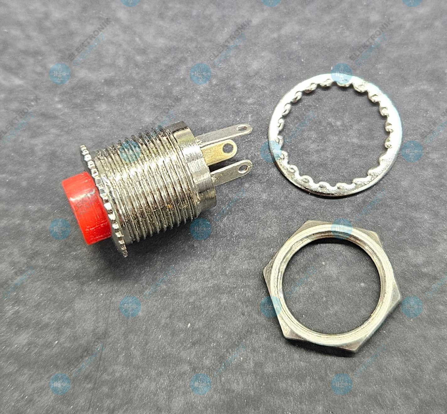 CP 018 Drucktaster rot Metall Bohrloch 12 mm 1 x Wechsler Lötanschlüsse 3-polig 1 A