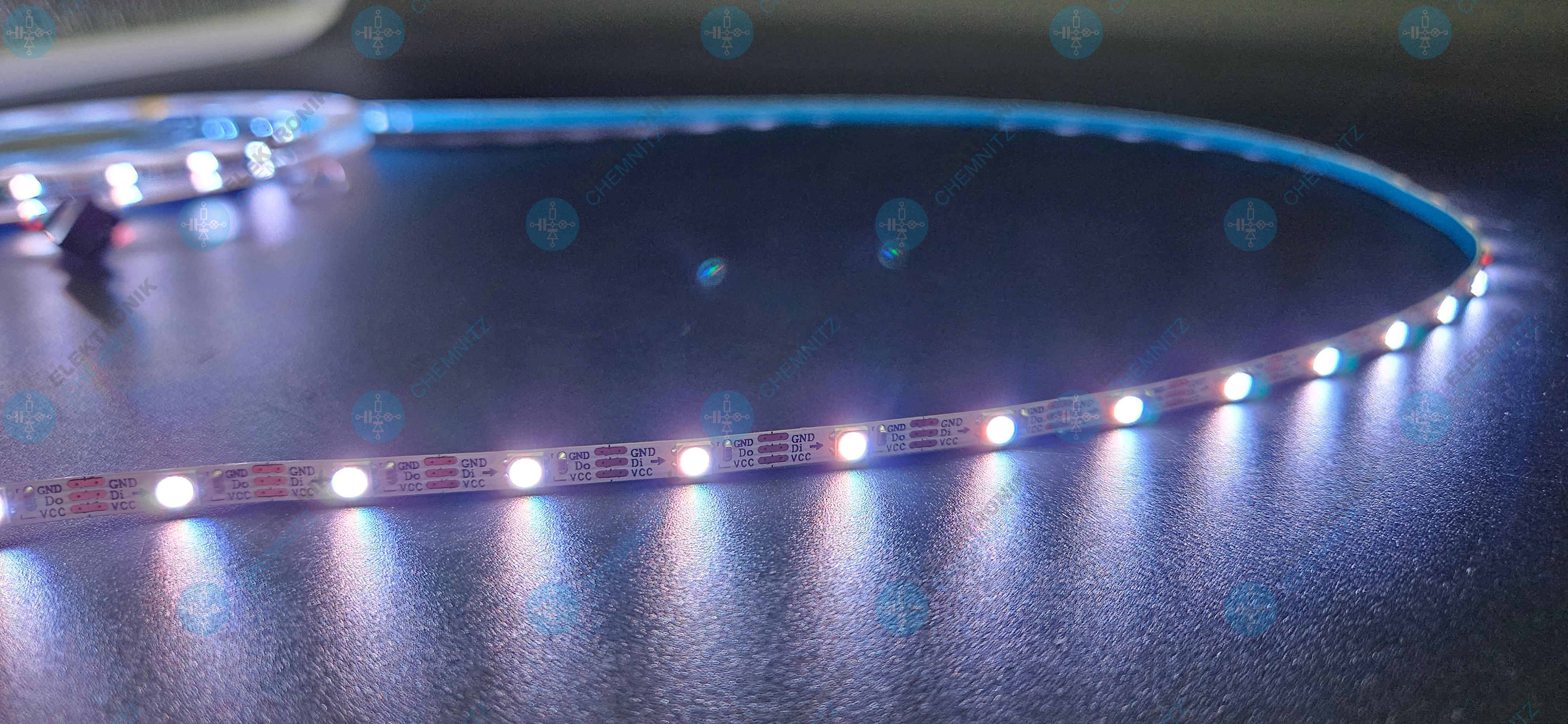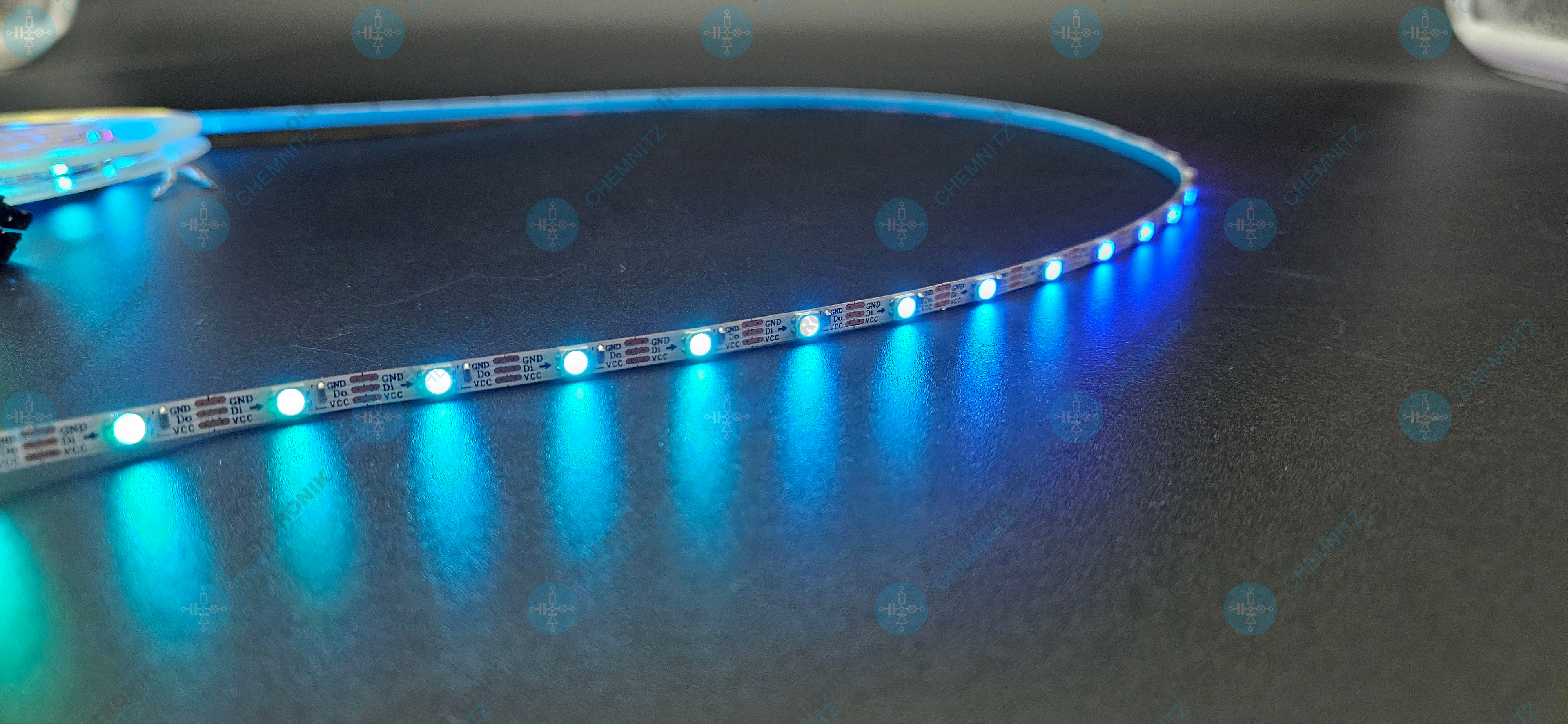Mit einer hohen Pixeldichte von 60 Pixeln pro Meter sorgt der LED Streifen für besonders feine und gleichmäßige Effekte. Die integrierten SK6812 LEDs kombinieren LED und Steuerchip in einem Bauteil, wodurch eine einfache Ansteuerung über nur eine Datenleitung möglich ist.