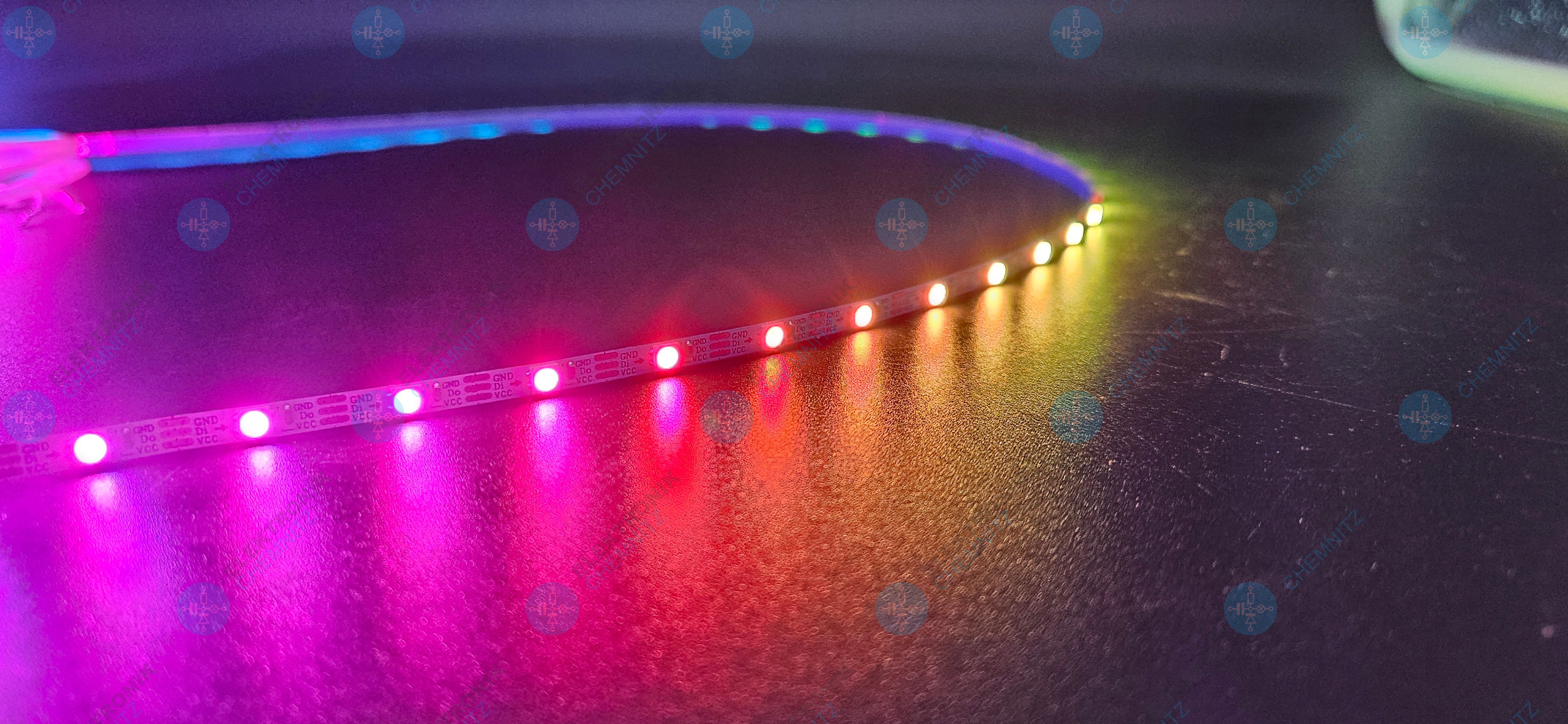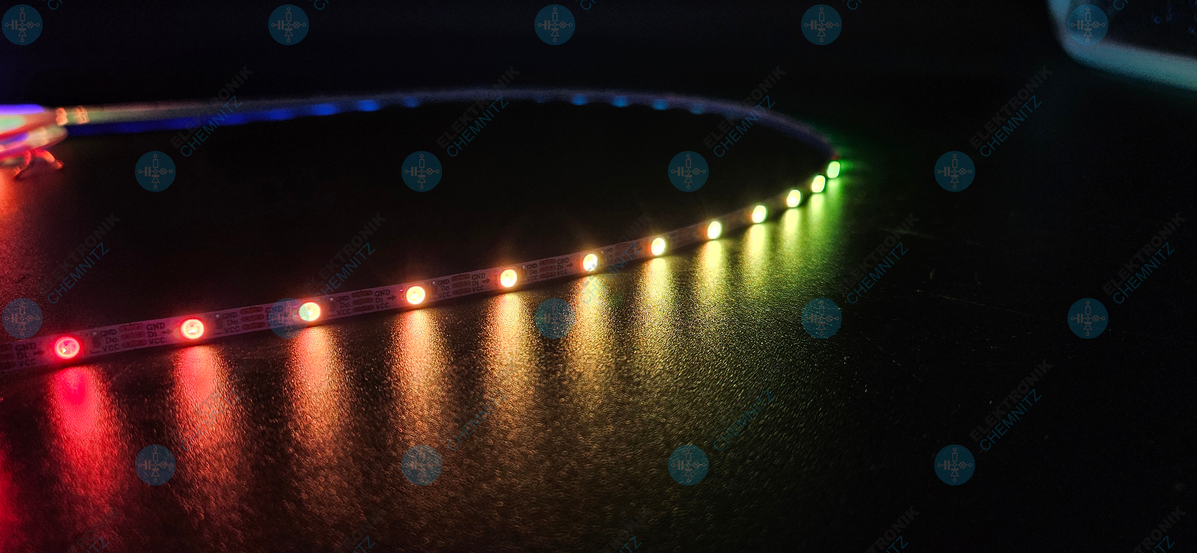 Der digitale LED Streifen mit SK6812-Chip ermöglicht die individuelle Ansteuerung jeder einzelnen LED (Pixel). Dadurch lassen sich komplexe Lichteffekte wie Farbverläufe, Lauflichter und Animationen realisieren.