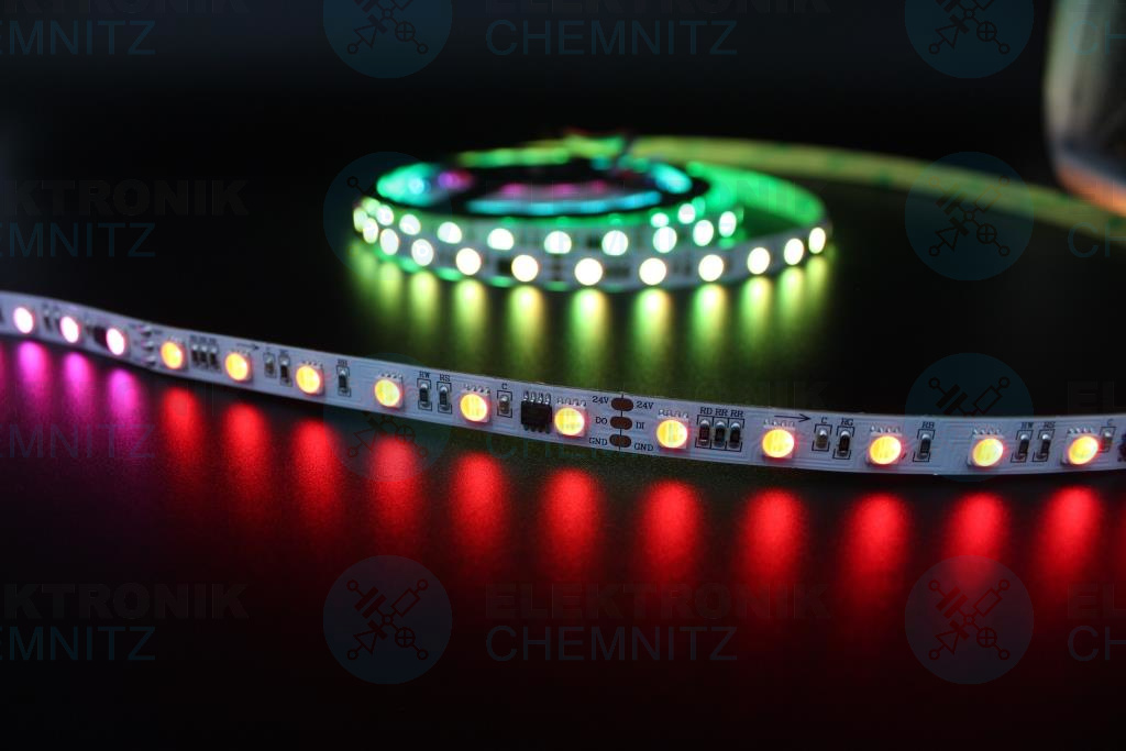 Produktinformationen "LED Streifen 5050-60-UCS2904B digital DC24V RGBW 2800K 10px/m IP20 PCB: weiß 10mm"
